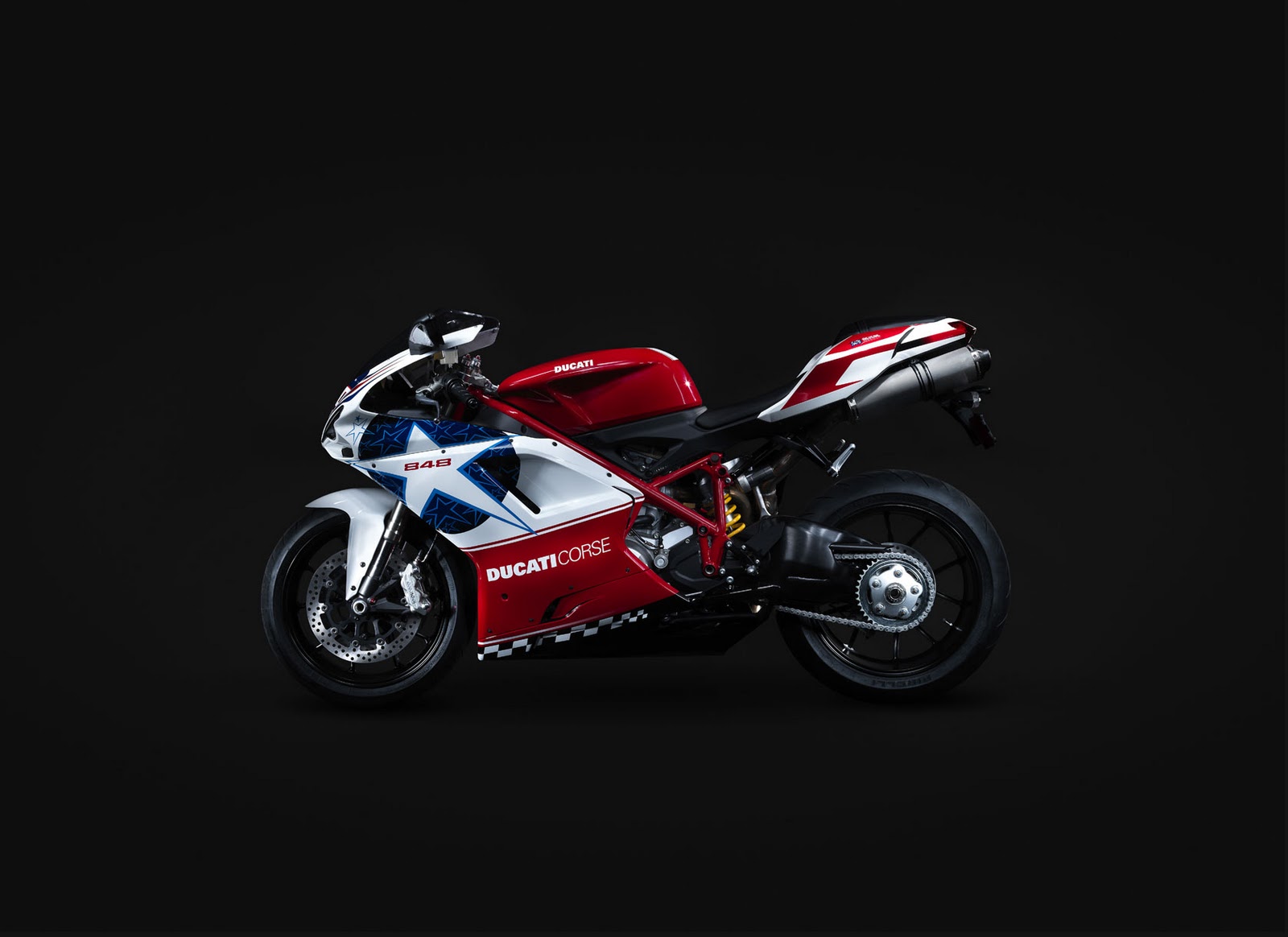 Ducati North America is proud to announce the 848 Nicky Hayden Edition. This striking livery places a distinctly American stamp on the market’s best middleweight sport bike. We are excited to unveil this model in conjunction with the Red Bull United States Grand Prix at Mazda Raceway Laguna Seca, as there is no better time to celebrate the American World Champion than at his home race on the 4th of July. This US-exclusive model features an American inspired paint scheme, aptly fit for its introduction on the 4th of July, personally autographed gas tank, and model updates for the 2010 year. MSRP is $14,495, and will be available July 7 at authorized Ducati dealers.